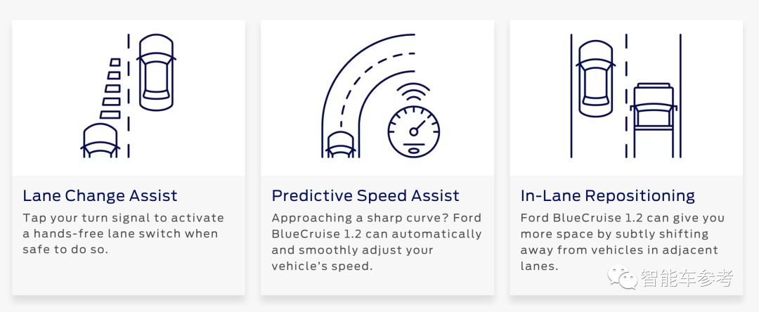 福特目前的L2级辅助驾驶系统BlueCruise,去年9月已经更新到了1.2版本。