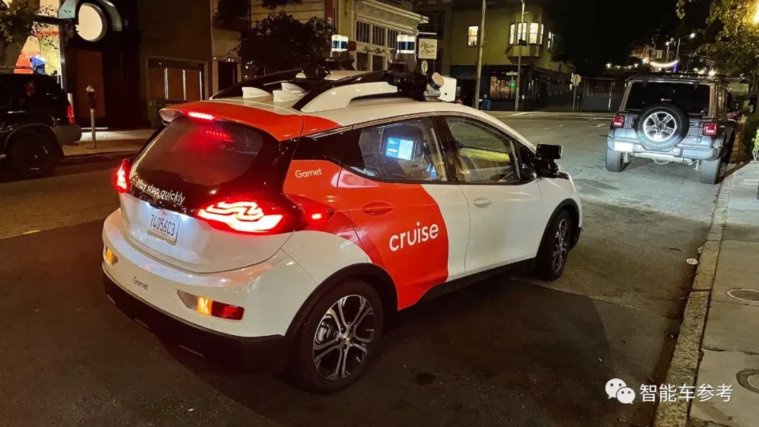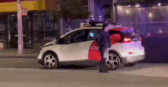 去年4月,通用Cruise的RoboTaxi在旧金山晚间的街头,因为不开近光灯,被交警拦下。