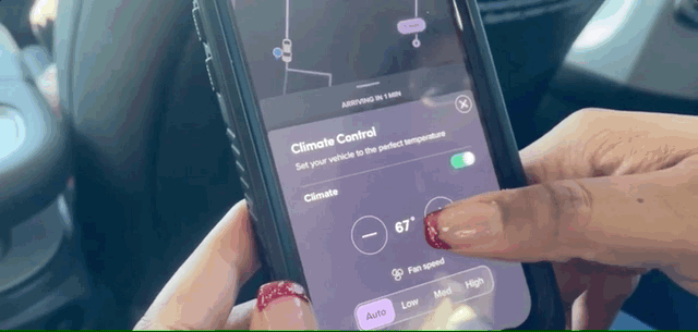 通过使用打车平台的App,你能够调控所乘坐的Robotaxi,例如解锁车辆、决定车辆是否开始行驶、联系客服、调节车内温度。