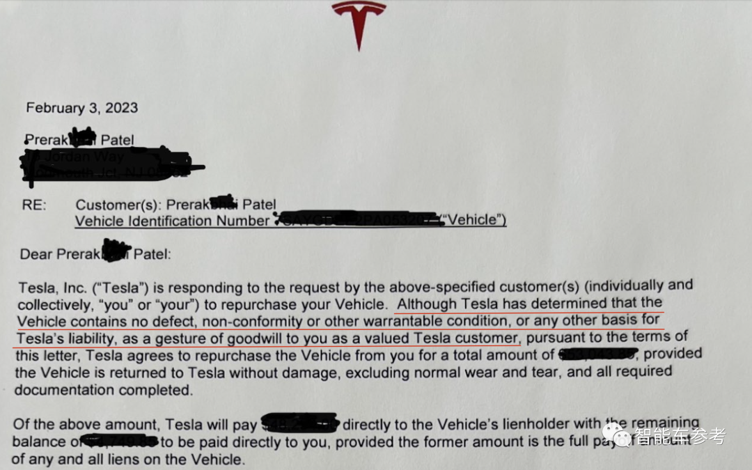 不过在给帕特尔发的邮件中,特斯拉表示“公司已确定车辆不存在任何缺陷或公司应该负责的依据,同时车辆也没有符合其他保修的条件”,但特斯拉愿意回购——出于善意,“公司视您为尊贵客户”。