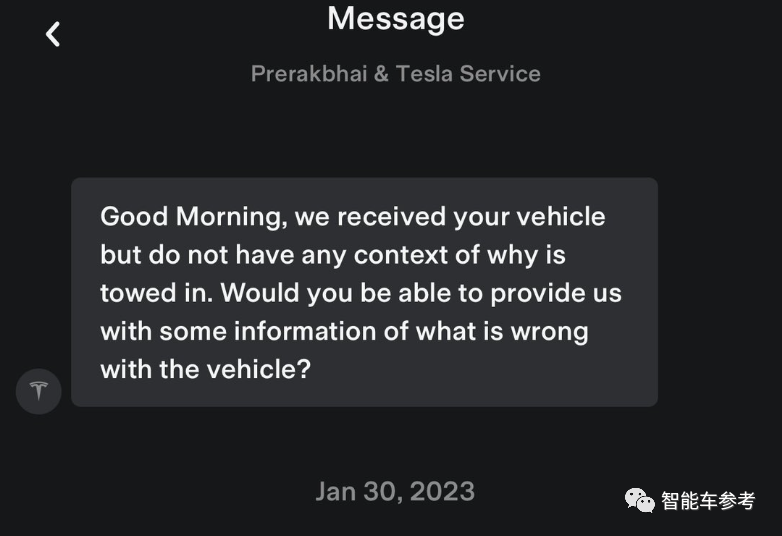 后来特斯拉服务中心联系了帕特尔,说:“我们已经收到你的车,但是我们并不清楚你为什么要把车拖来。你能给我们提供一些车辆故障的信息吗?”