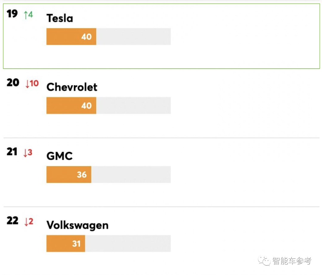 这导致美国权威机构《消费者报告》不再推荐特斯拉。在2022年的年度报告里,特斯拉的可靠性在24个品牌中排名第19,报告显示特斯拉的车身硬件、转向装置/悬架、喷漆和装饰、空调系统都存在问题。