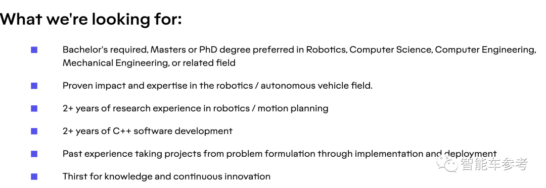 包括自动驾驶测试主管、自动驾驶安全工程师、终端用户服务工程师、运动规划工程师等等。