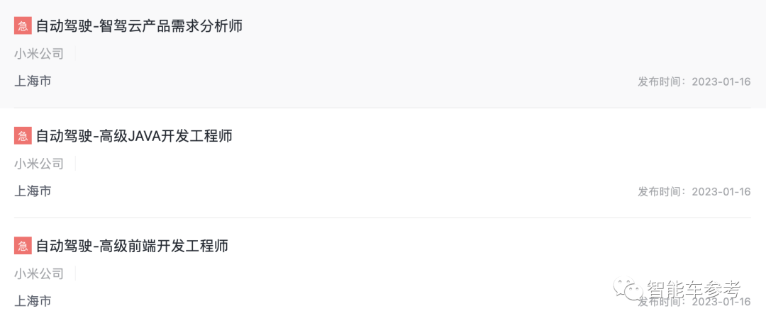 那么智能车领域,目前小米都在紧急招聘什么人?