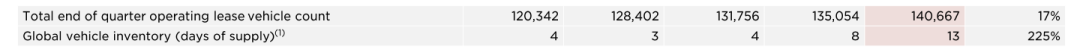 但值得注意的是第四季度,特斯拉全球库存供应天数(days of supply)指标达到13,同比增长225%。