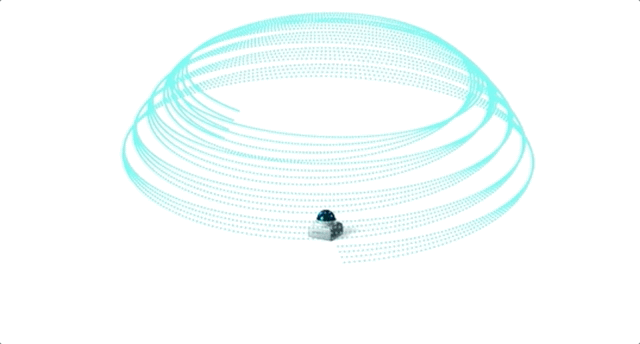 Mid-360视场角FOV为360°×59°,激光波长为905nm,反射率10%的情况下探测距离为40m,最远探测距离可达到70m(反射率为80%),近处盲区为0.1m,点频为20万点/秒。