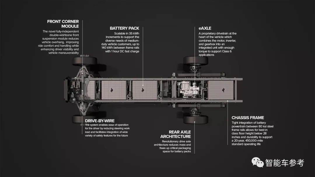 而Harbinger底盘的创新底盘架构,也是线控转向;集成电池、动力总成和车架,增加车内空间。