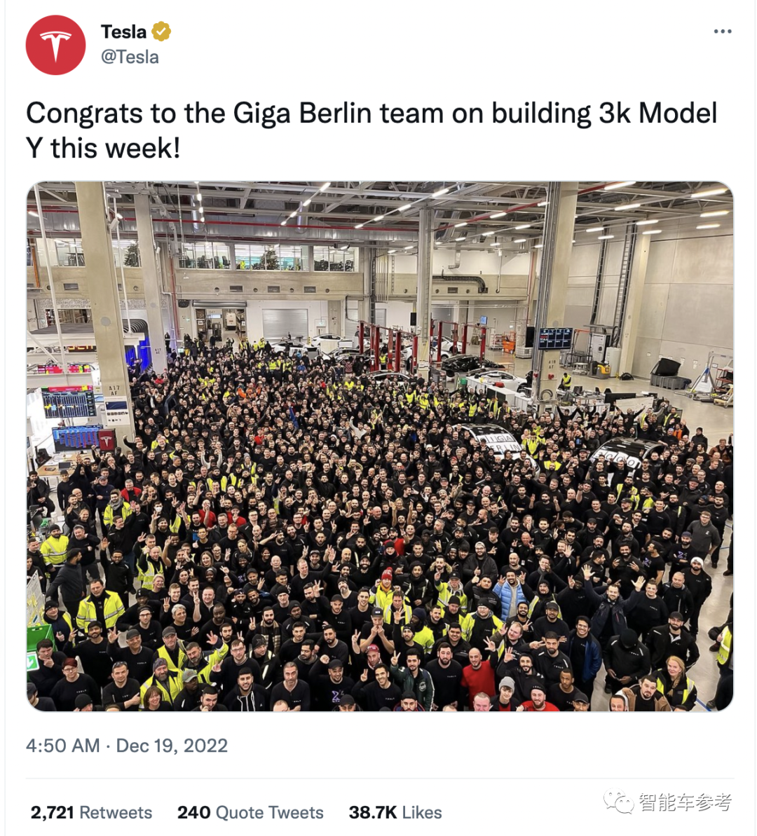 在中国团队来到美国后,德州工厂 Model Y 产量就从8月的每周1000台,增长到每周3000台。