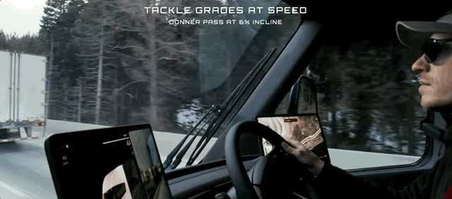 下坡时,Semi卡车能够利用动能回收来降低车速,比较安全。