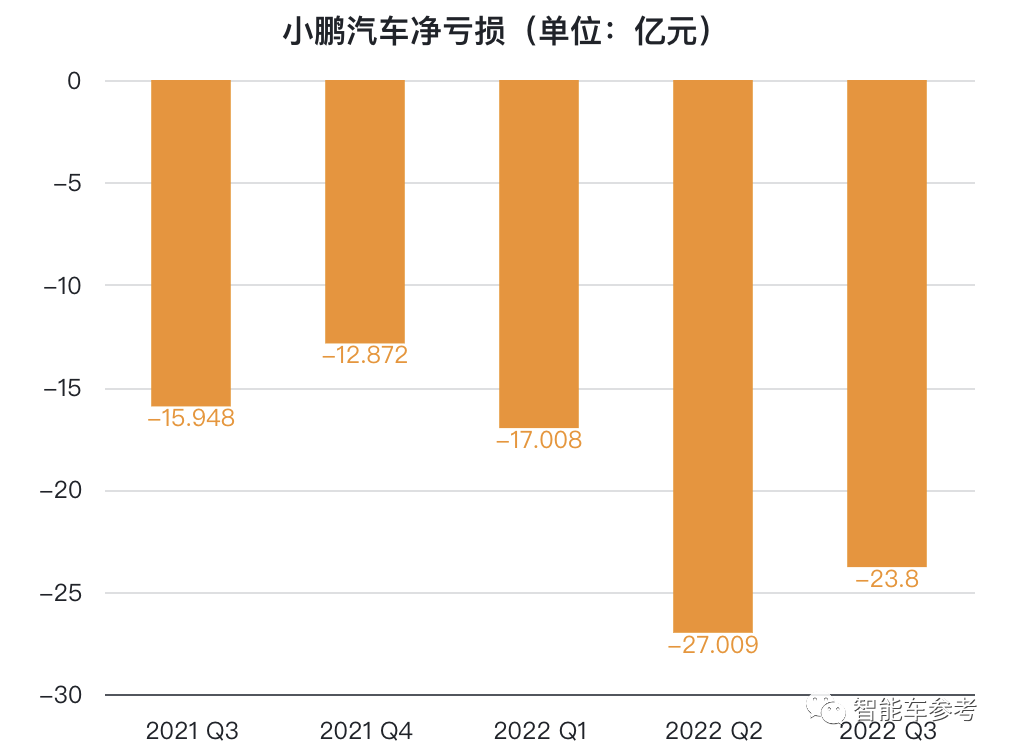 经营利润方面,小鹏汽车三季度净亏损23.8亿元,比二季度稍有收窄。