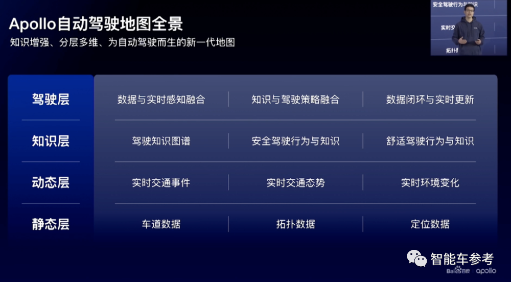此外,为了保证更好的自动驾驶体验,百度提出了Apollo自动驾驶地图,主要分为四层: