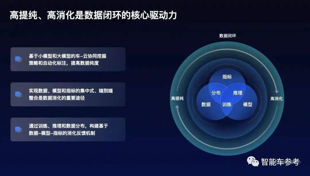 总结来看,百度提出了以高提纯、高消化为核心驱动力的数据闭环的设计思路。高提纯通过小模型和大模型的车云协同,实现高效的数据挖掘和自动化标注;高消化通过数据、模型、指标的集中式、端到端整合来实现。