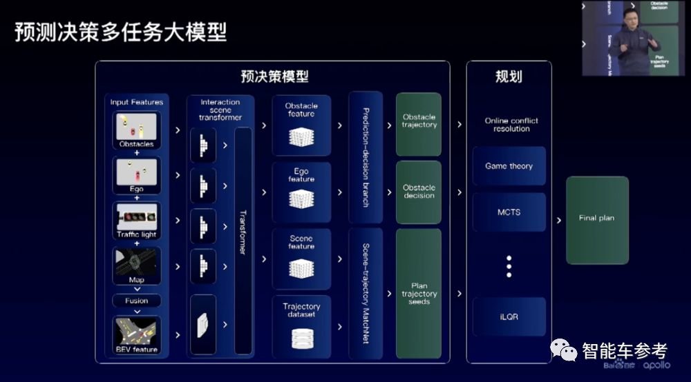 百度最初的自动驾驶系统,预测和决策是分开的。预测带有自标注的任务,一直都是数据驱动的,决策、规划、控制,当初沿用的都是一些偏规则的传统方案。