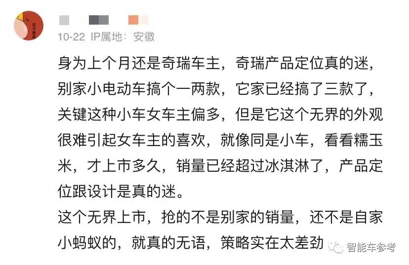 所以无界Pro,其实也多少像小蚂蚁的高配版本,代表着奇瑞在已经验证成功的爆款赛道上,持续加强。
