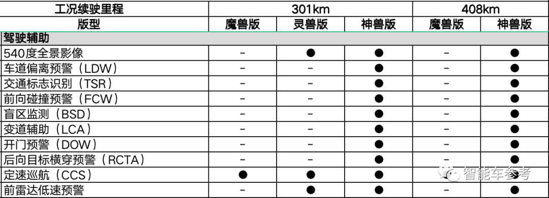 智能驾驶硬件配5个摄像头、2个毫米波雷达、4个超声波雷达,支持车道偏离预警、交通标志识别、变道辅助、定速巡航等功能。