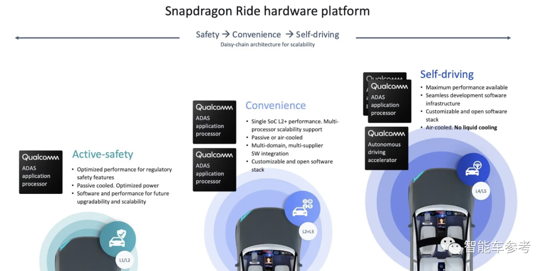 高通最新Snapdragon Ride已经上车长城魏牌,算力360TOPS。而不久前高通发布了算力同样可达2000TOPS的Snapdragon Ride Flex系列,不过量产时间未透露。