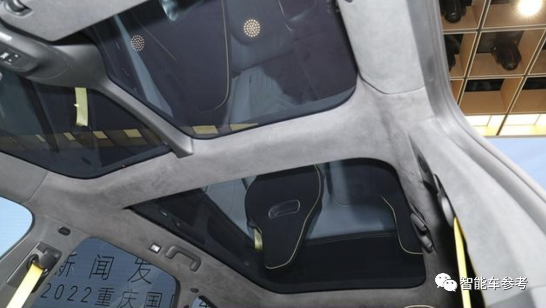 豪华配置还包括:NAPPA真皮座椅、麂皮顶棚、4座/5座布局,座椅通风加热按摩、车内主动降噪技术、还有一块别致的分区全景天窗: