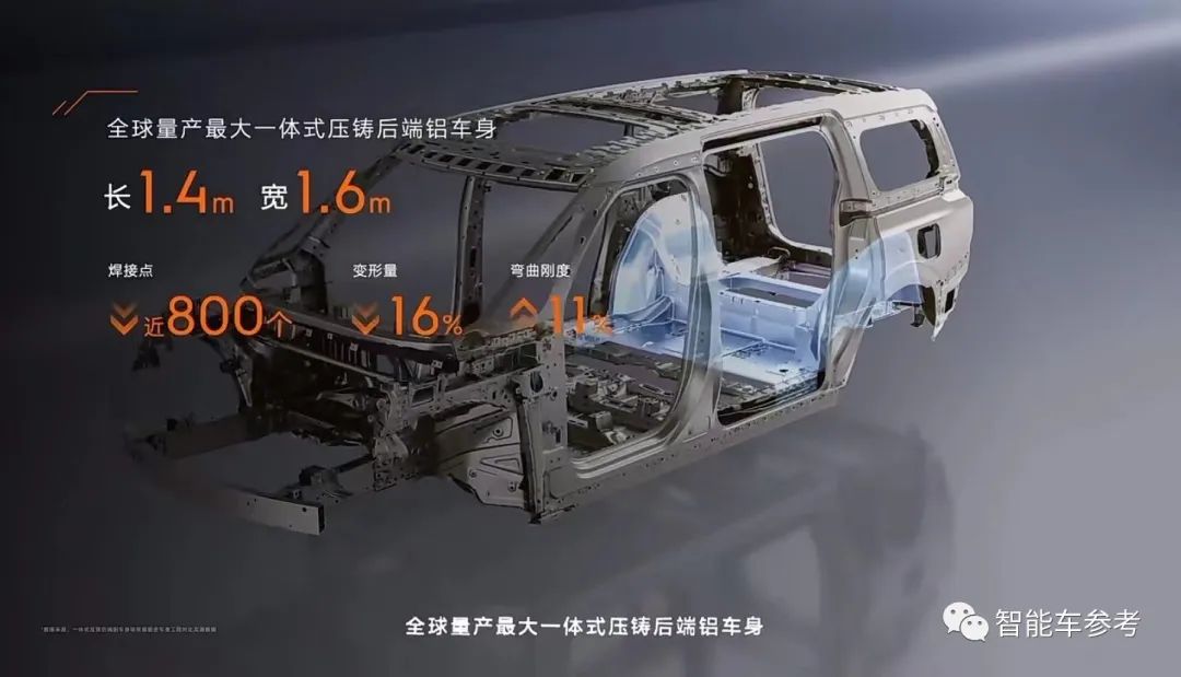 好处是一次性减少了近800个焊接点,在遇到冲击时能够减少16%的变形量,提升11%的弯曲刚度。