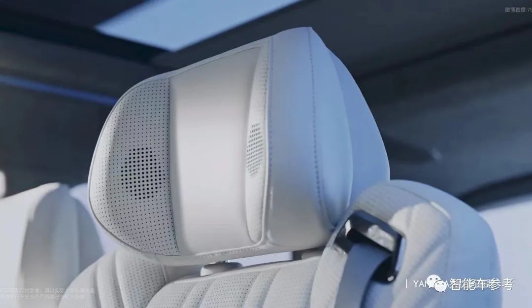 车内音响设备,来自雅马哈,主驾与二排座椅配备了6个雅马哈头枕扬声器,能够与全车其它14个扬声器进行联动。