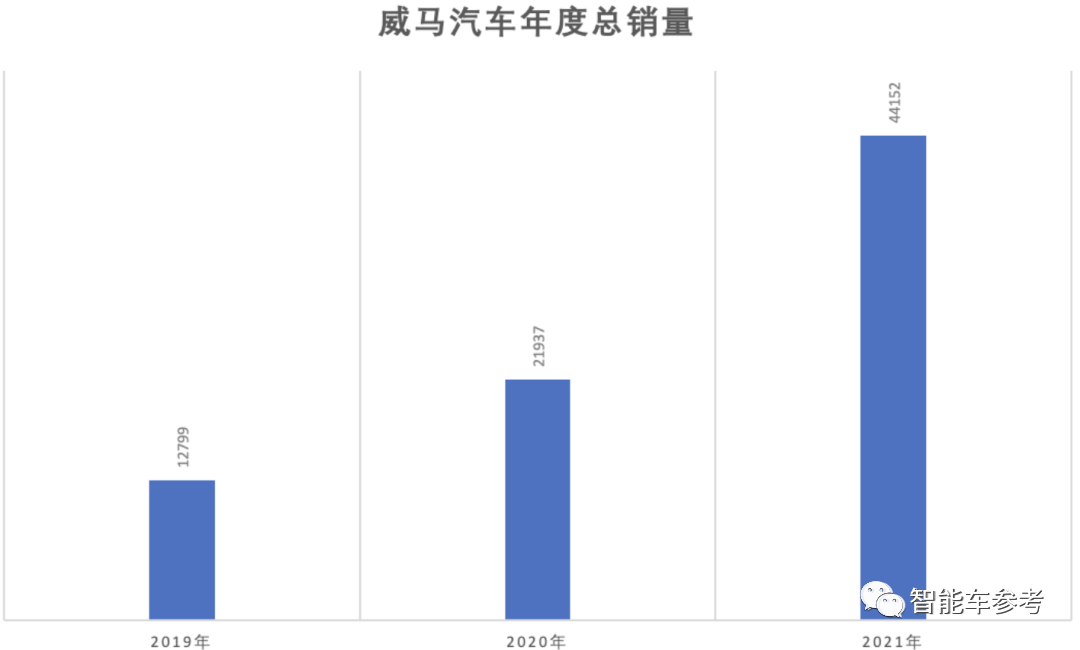 从2019以来,每年销量都有翻番式增长,2021年汽车销量达到了44152辆,同比增长了73%。