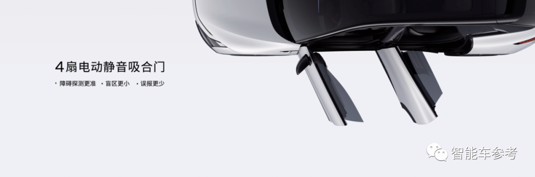 外观方面,车门采用4扇电吸门、无边框设计,取消了机械门把手,按下按钮即可开门。
