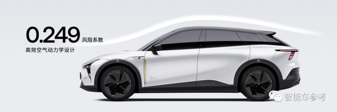 车尾采用主动升降尾翼,风阻系数可以降低到0.249。