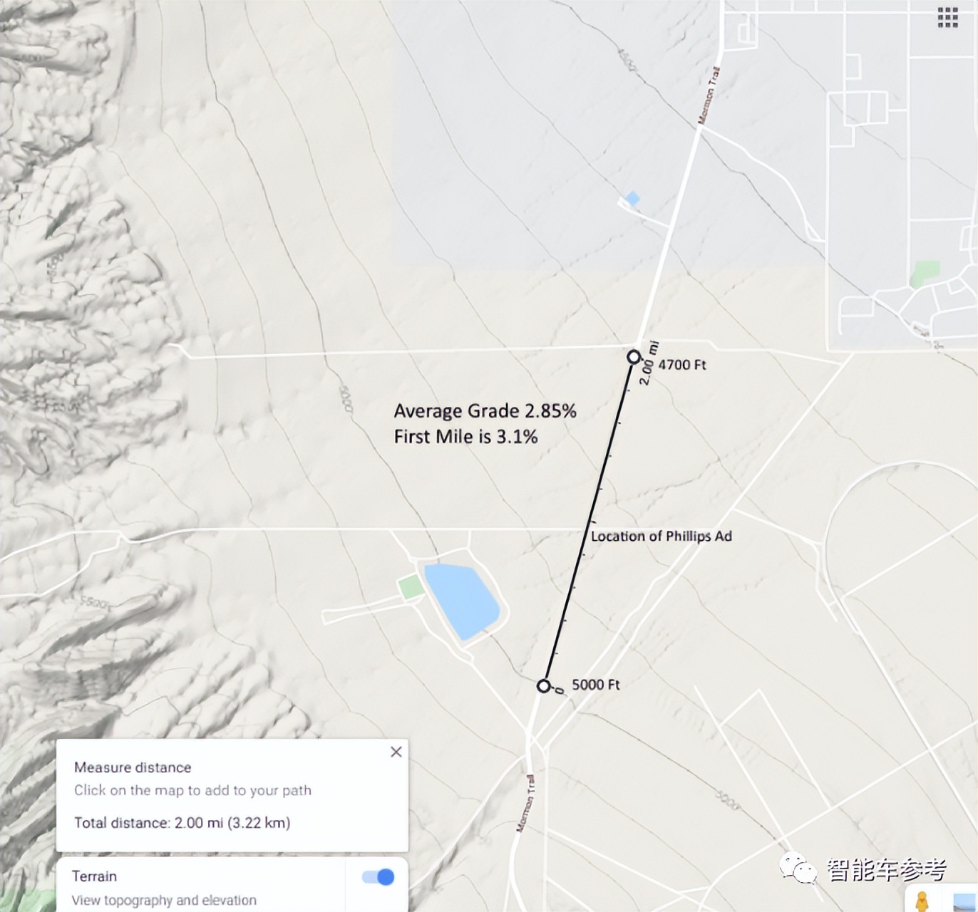 这段笔直的路,长达2英里,坡度始终保持在3%。