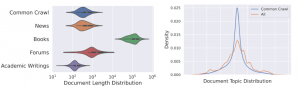 随后,通过规则过滤和额外训练的二分类fasttext模型,以及对测评相关数据的去除,数据集最终处理完的数据量为262B tokens。为了更好的平衡各个数据源的比重,微信AI团队也对数据进行不同比重的采样,最终,整体数据集的Topic分布相比 Common Crawl更加平滑。