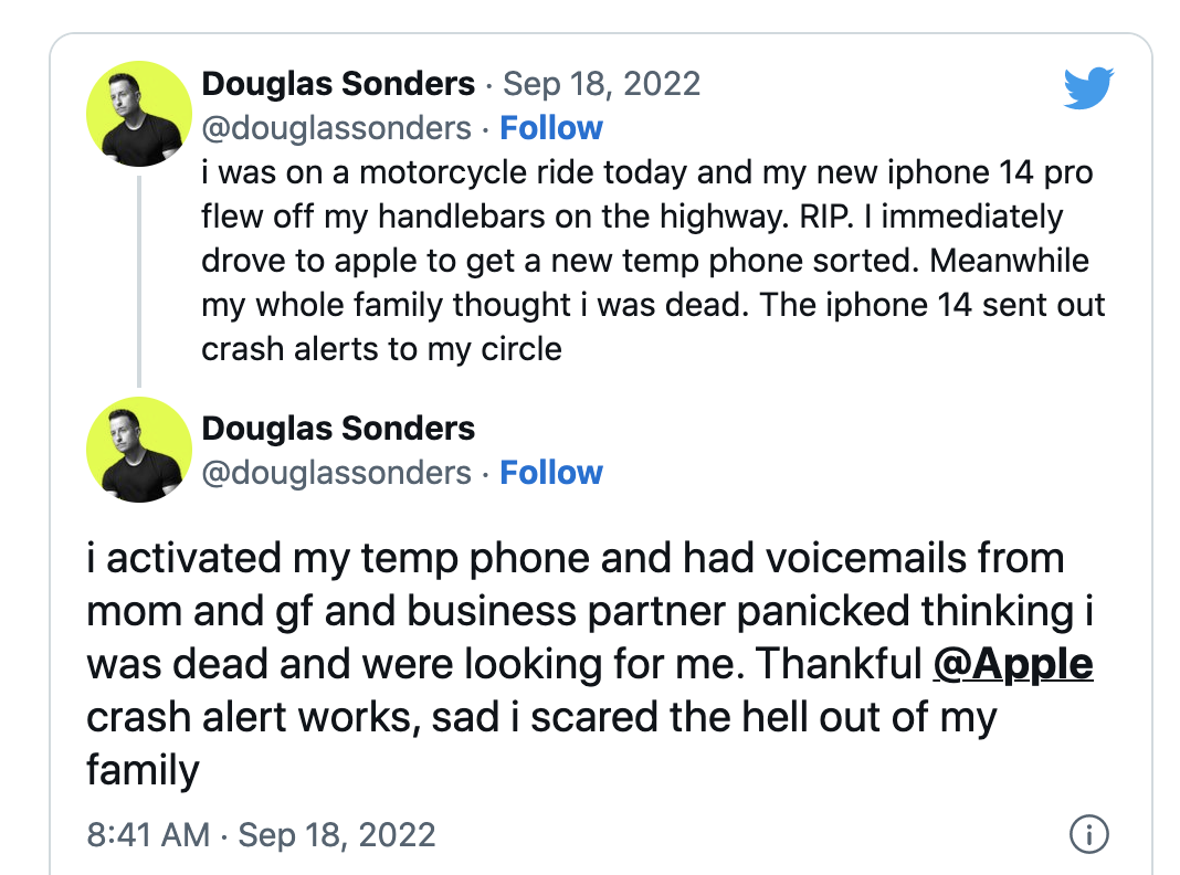 全新iPhone的亮点功能——车祸检测和SOS报警,确实有用。