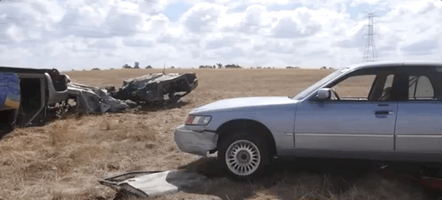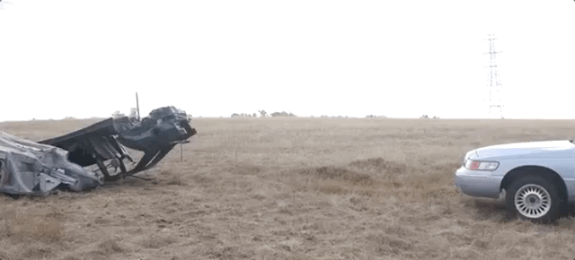 第二次车祸,汽车速度更快、更猛烈一些,碰撞后冒起了烟。