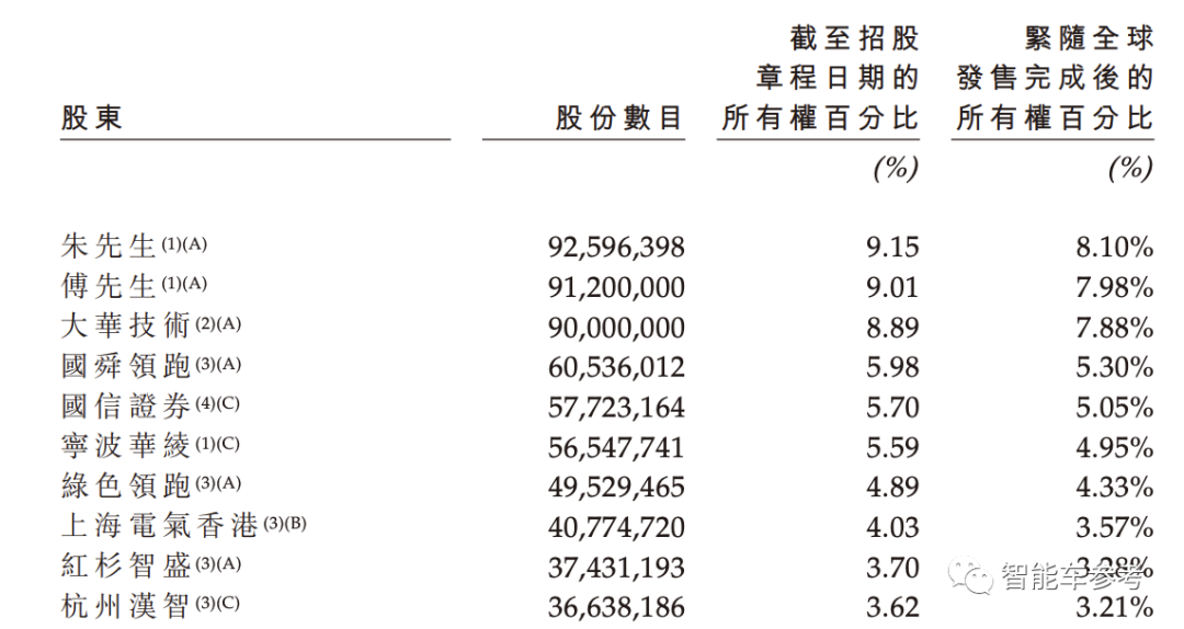 另外,零跑汽车其他两个公开职务和持股的高管,包括负责市场销售的吴保军,以及负责技术研发的曹力,分别持有零跑汽车0.17%、1.12%的股份。