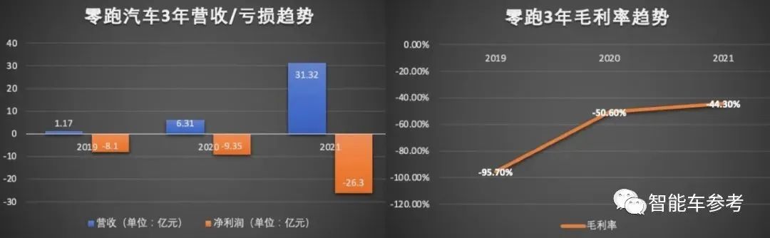 在最新披露的2022年第一季数据中,零跑毛利率因为C11交付扩大,回升至-26.6%。