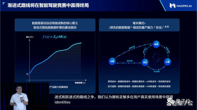 雷刚 发自 副驾寺 非常AI | 公众号 QbitAI 不争了。 辅助驾驶是通向自动驾驶的必由之路,渐进式路线更快赢得终局。 在创办的第1020天,在第六个HAOMO AI DAY现场,这种态度被亮得明确,结论讲得掷地有声。此时此地此身,在实践成果和趋势再清晰不过的情况下,多年的自动驾驶路线之争,已再无争论的必要。 特斯拉开创的路线,国外以FSD公测开始上路,国内则被速度更快的面壁者推向了检验时刻,而且是一个更大的数据闭环模型启动时刻。 这个在中国直道超车的面壁者就是毫末智行,现在还旗帜鲜明把行业公理真谛打上公屏:遵循数据智能,依靠数据智能,实践数据智能,这是驱动自动驾驶驶入终局的第一性原理。