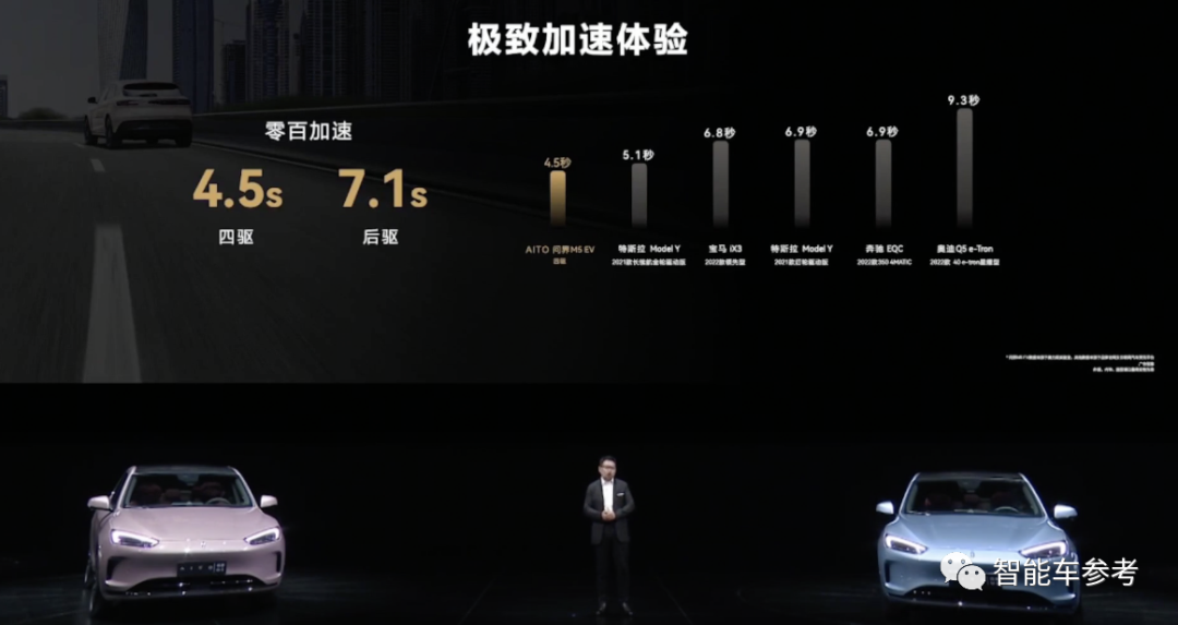 零百公里加速时间上,四驱版4.5秒,后驱版也能达到7.1秒。