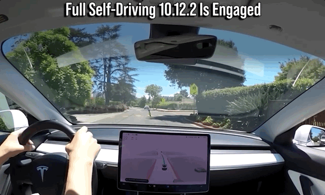 启用FSD beta 10.12.2,司机此时并没有踩加速踏板。