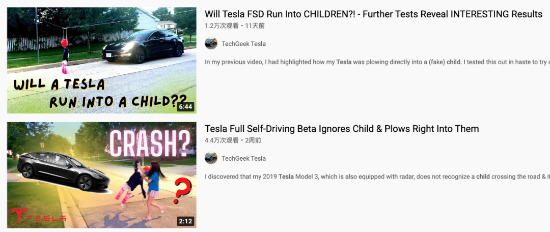 不仅一堆人对特斯拉自动驾驶表示失望和质疑,甚至还引发了特斯拉车主们以身试“法”,极端到拿自己孩子做测试。