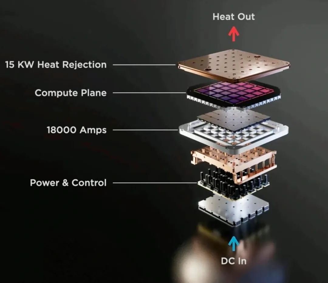 瓦片也包含了所有的液冷散热和机械封装,这和Cerebras公司推出的WES-2芯片的封装理念类似。