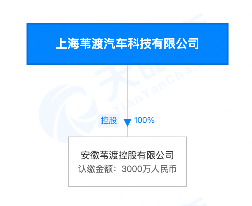 注册于2022年5月,主体是上海苇渡汽车科技有限公司,曾用名文锣科技。
