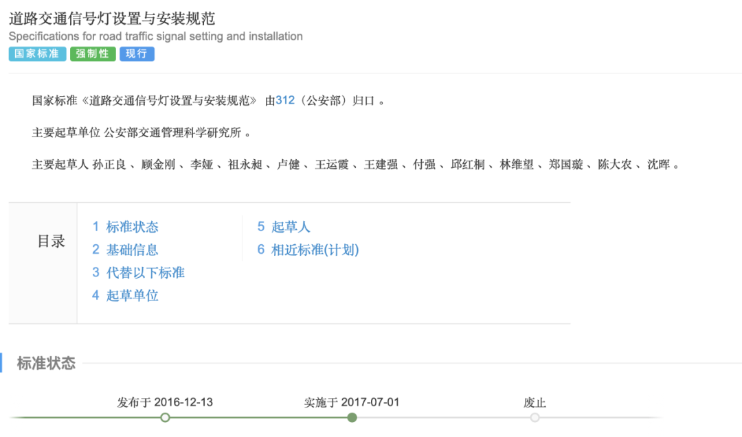公开资料显示,《道路交通信号灯设置与安装规范》发布于2016年12月13日,从2017年7月1日开始正式实施,至今为止还在沿用。