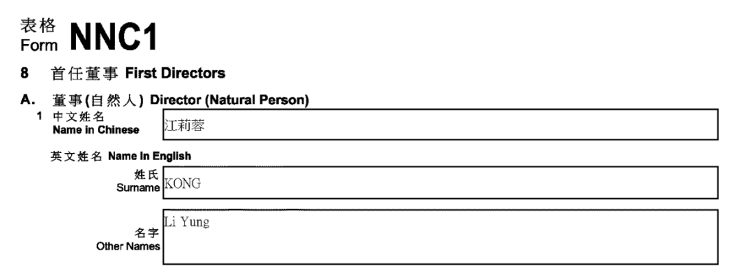 去年11月3日成立,公司董事为Li Yung KONG。