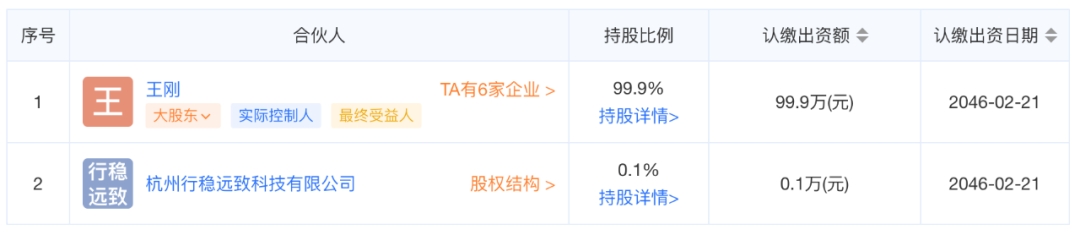 但在脚踏实地的关联方中,还有一家值得关注——“杭州行稳远致科技有限公司”,也是今年2月成立,法人代表也是王刚。