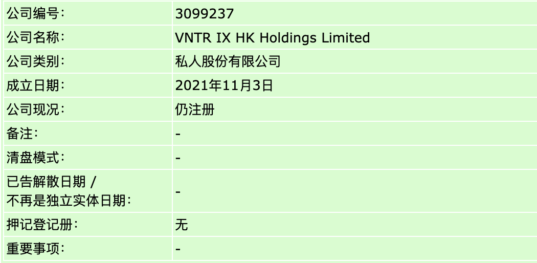 而最后一个股东,VNTR IX HK Holdings Limited,啥来历?