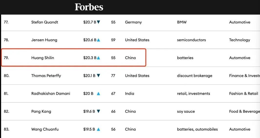 福布斯2022年富豪榜上,黄世霖排名第79,榜单显示他的净资产达到了203亿美元(折合人民币约为1374.4亿元),排在王传福前面。