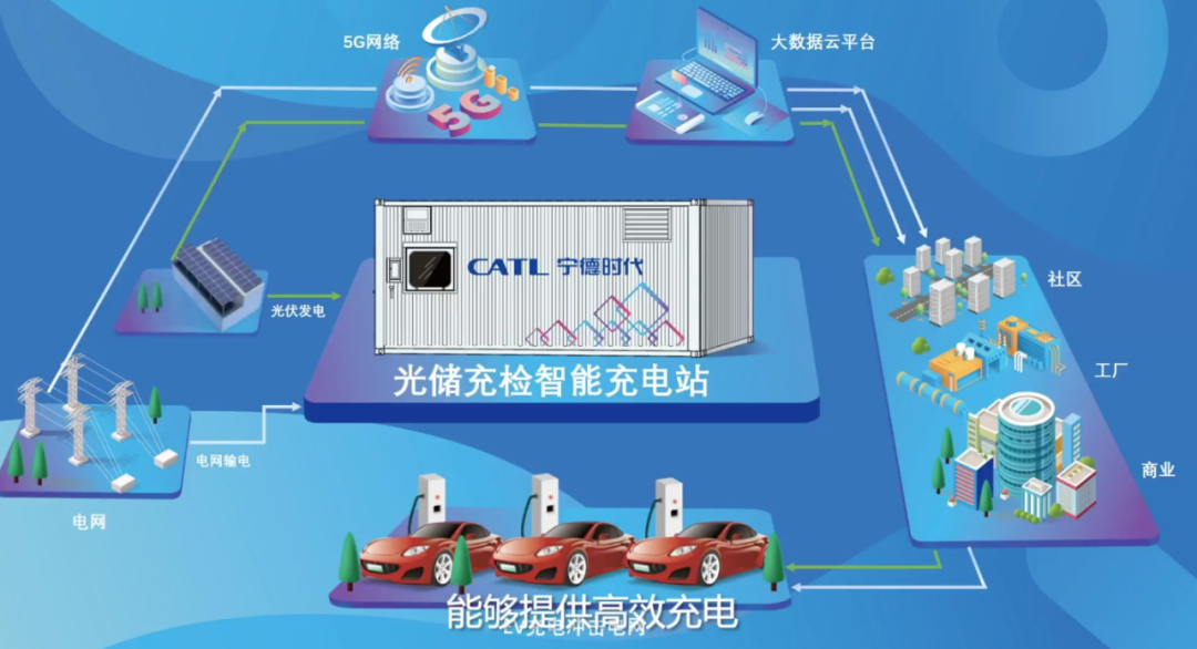 其实所谓的光储充检,是集光伏发电、储能、快充及电池检测等功能于一体的超充技术。