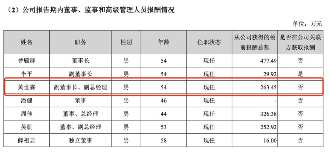 从2017年4月至今,黄世霖一直担任宁德时代副董事长、副总经理,也就是离职前的岗位。