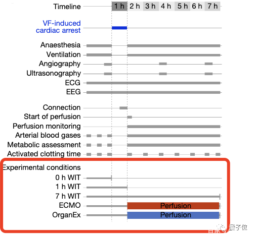 第一组为刚死后的小猪,第二组为死后1小时的,第三组为死后7小时的,最后一组为平行对照组,用ECMO对小猪进行体外循环,同样持续6小时,不过液体只有猪本身的血液。