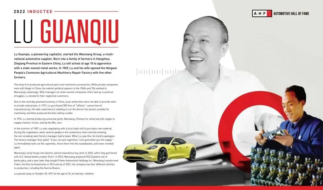 没错,已经去世5年的鲁冠球,入选2022年汽车名人堂,与发明大王爱迪生、汽车之父卡尔·本茨、汽车大王亨利·福特并肩“站”在了一起。