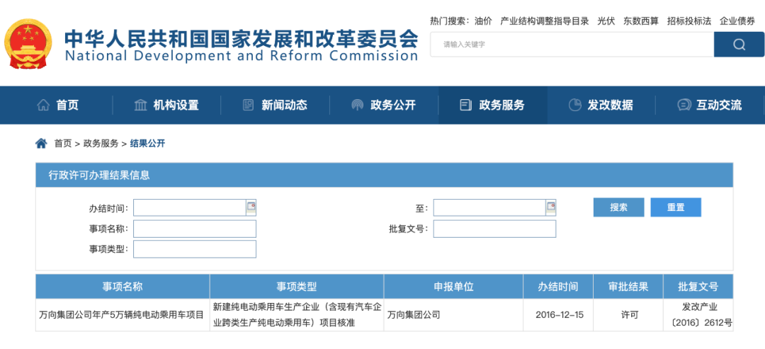 同样是2016年,中国这边,万向年产5万辆纯电动乘用车项目获得了国家发改委核准。
