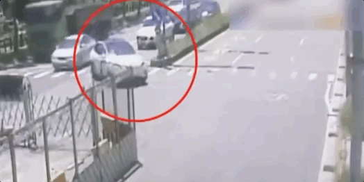 视频画面显示,这台白色Model X先是在路口缓缓掉头,然后沿着直道往前开。