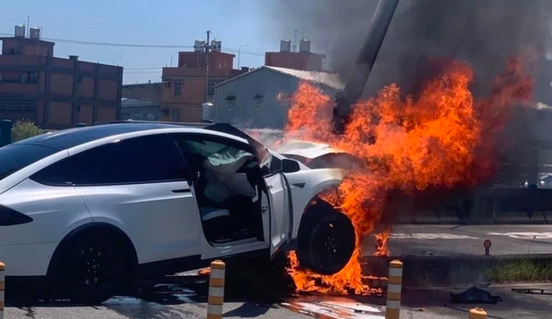 在这之前,他开着一辆特斯拉Model X,刚掉完头就撞上隔离带,瞬间起火。